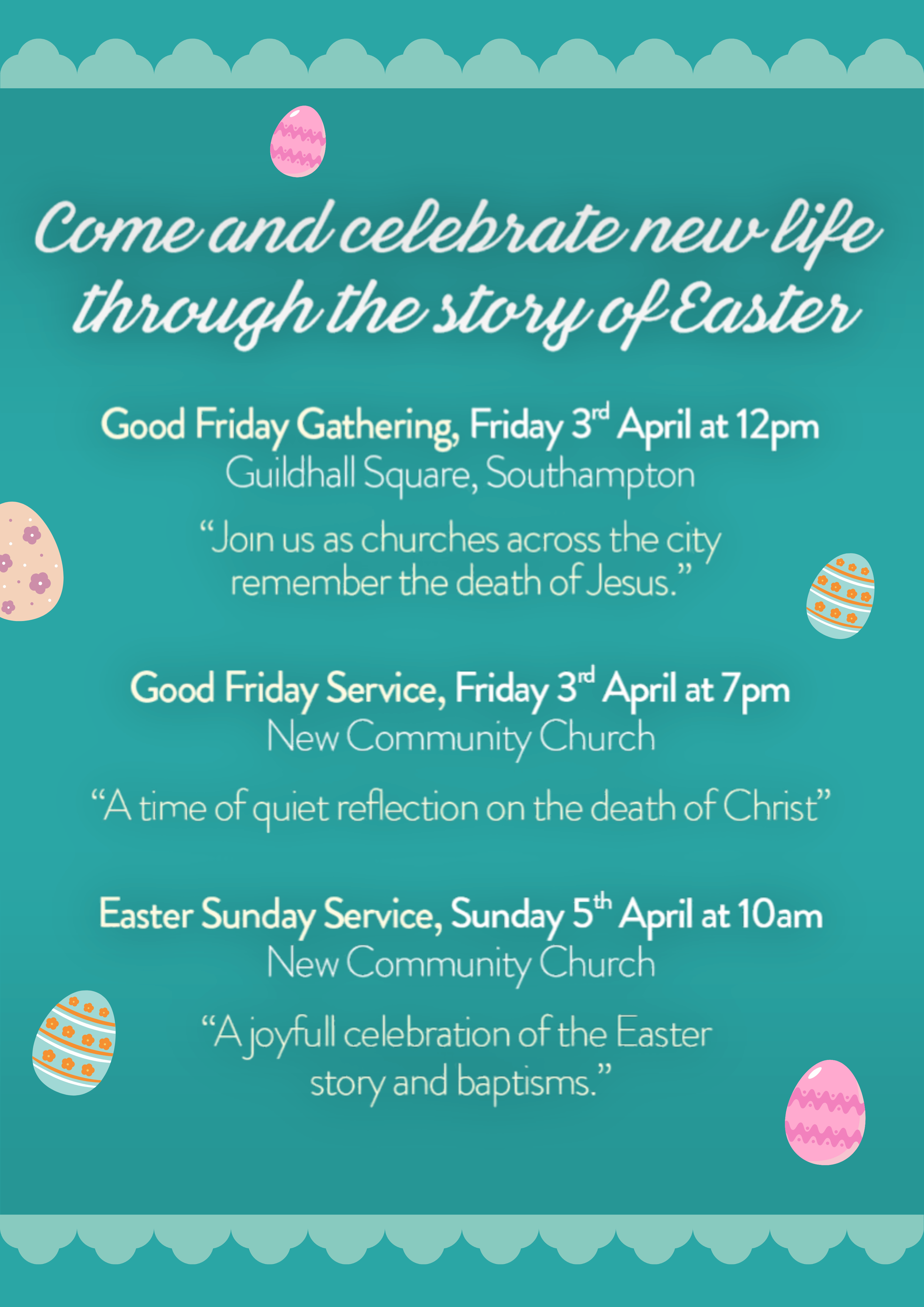 Have you joined New Community Church in the last six months or so? Come and join our Discover NCC' sessions 10th and 17th May during the service (10:30- 11:30) and then a bring and share lunch on 17th May 12:15-1:30pm.